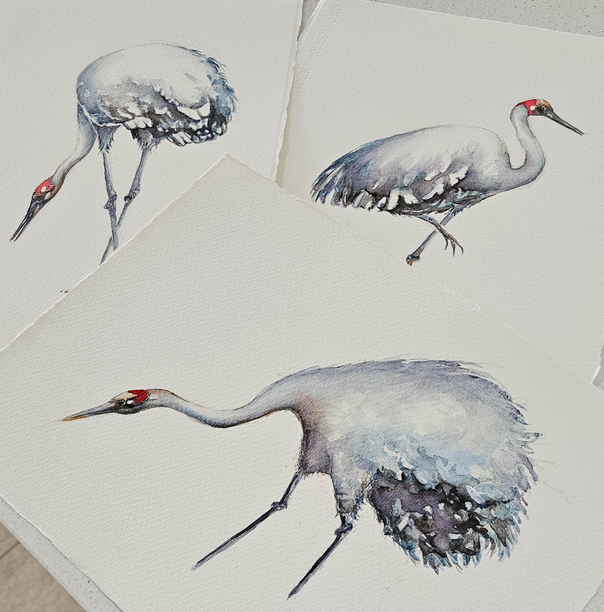 This set of 3 brolgas in various poses, can be purchased individually, as a set of two or the complete trio. (contact me for a special price for more than one painting)
